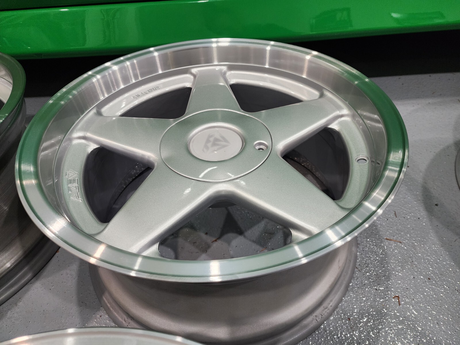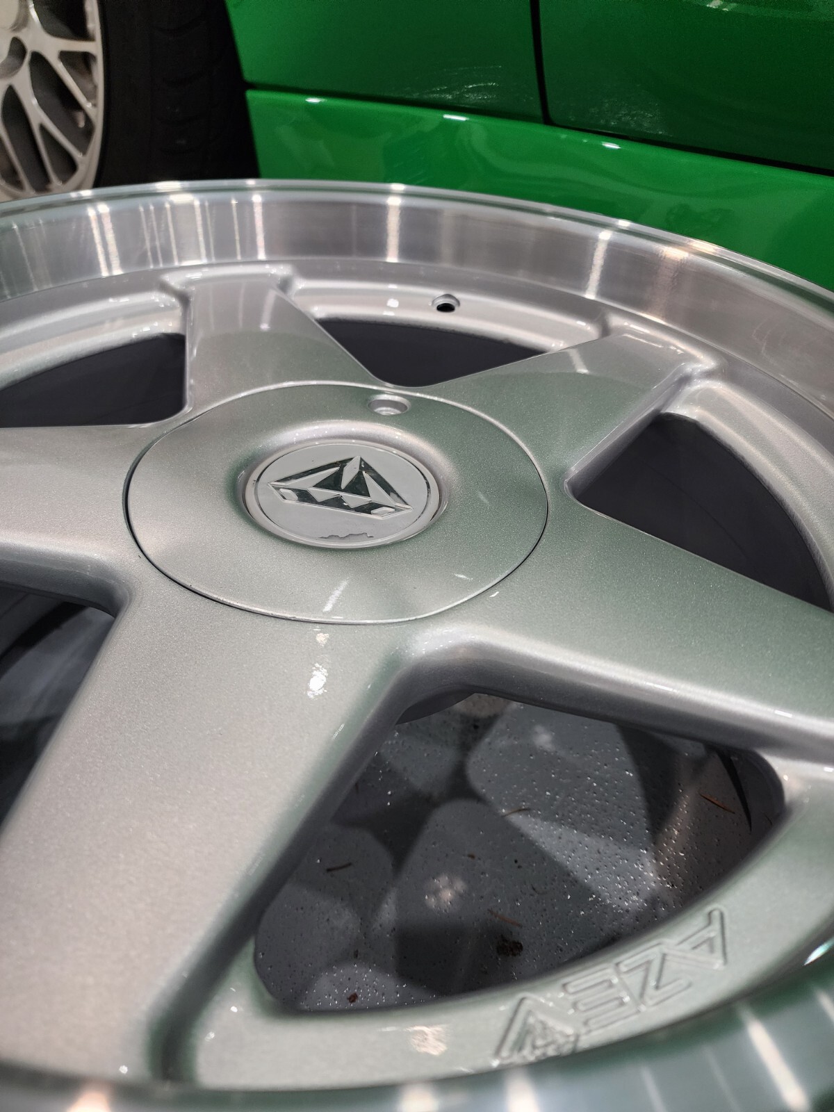 Set of freshly refinished Azev Type A . 17×8.5 et 13. 5x120mm bolt pattern . Machined lip with painted silver spokes and caps. rare classic wheels