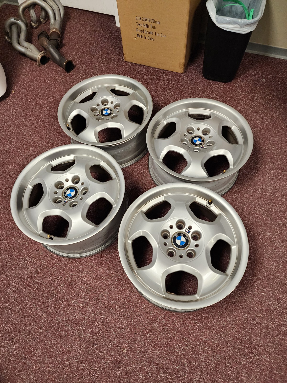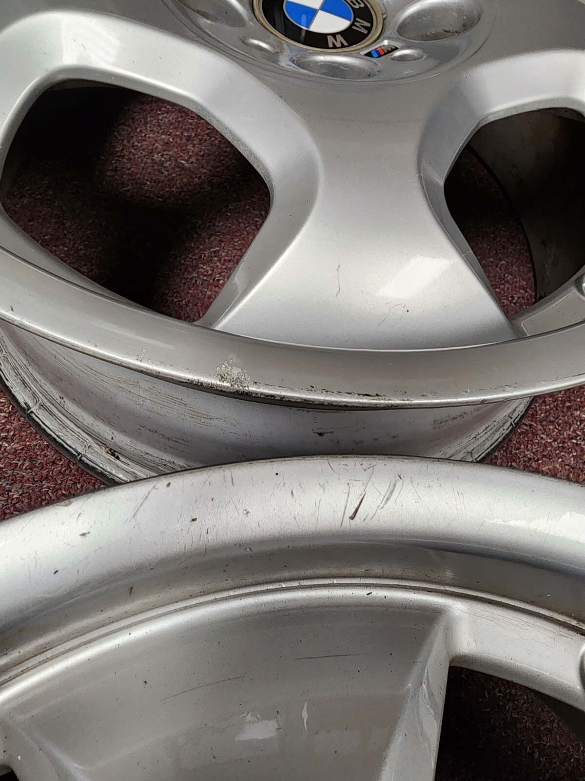 set of 4 front rims removed from a 1997 E36 BMW M3. scratches on surface area . no bends or cracks. BMW performance . BMW motorsport. BMW M